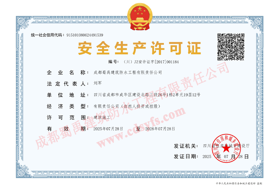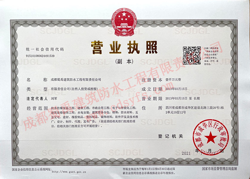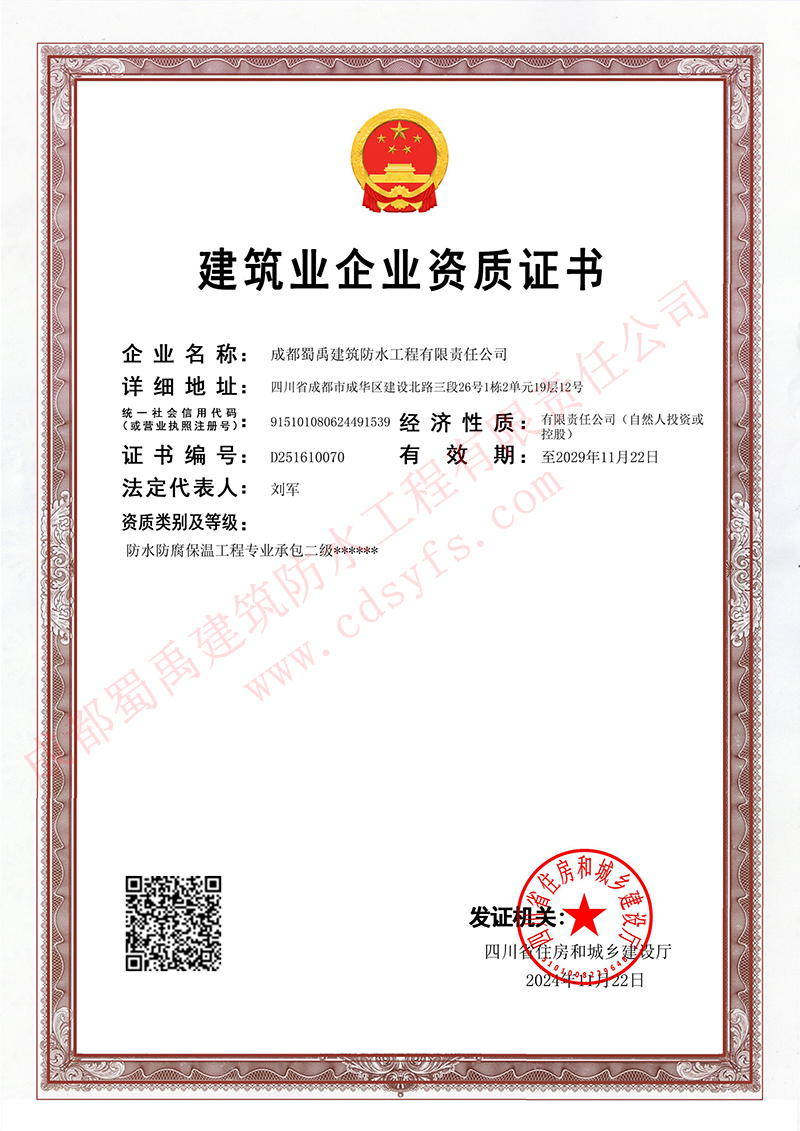 企業(yè)名稱:成都蜀禹建筑防水工程有限責任公司