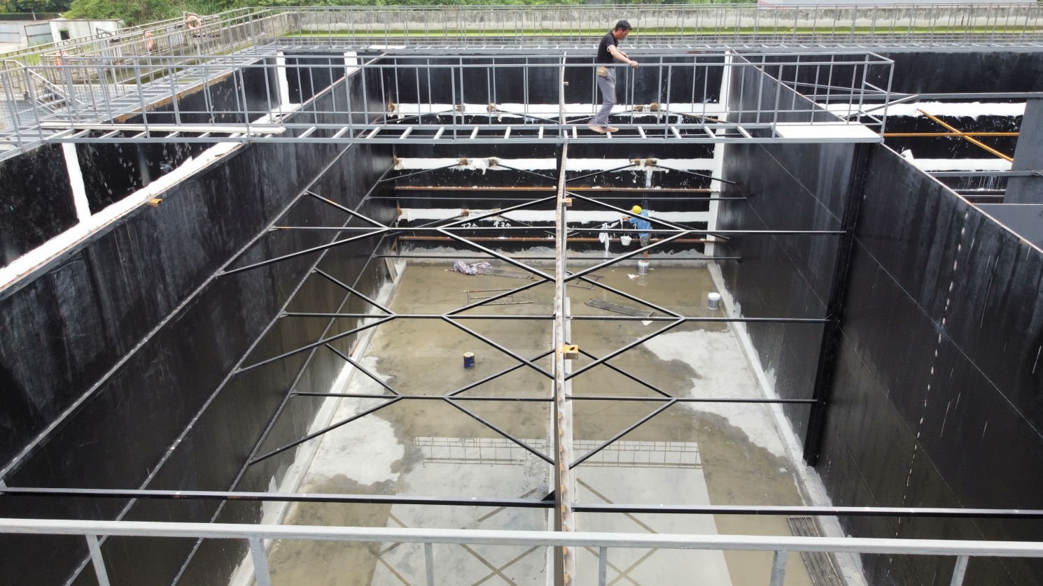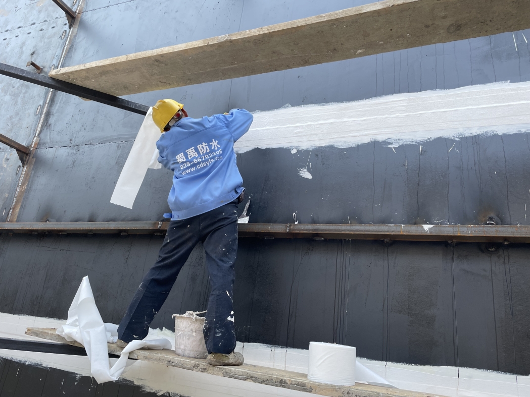 我公司承接的新津工業污水處理廠提標改造項目水箱防水工程,現場的情況是升級改造修建了兩個鋼結構的水箱,由于是鋼結構的,焊接處縫隙較多,容易出現漏水的問題,處理漏水的方式比較麻煩,普通的材料在鋼結構鋼板上粘貼不牢固,并且是污水處理池,污水具有一定的酸堿腐蝕性,所以在材料的選擇上,要考慮到與鋼板的粘結力,耐酸堿腐蝕性等特點,甲方經過找多家公司根據多種材料現場去做樣品后,實際情況檢測分析,最終確定選擇我公司制定的方案,采用蜀禹SYR金屬防水系統針對水箱防水處理,處理后效果很好。