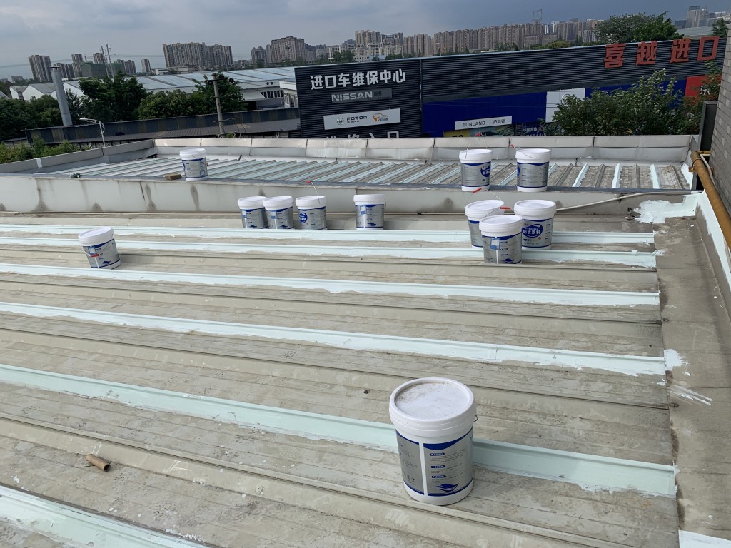 我公司承接的成都啟陽汽車位于成都市雙流區華府大道二段854號啟陽日產、別克、噴涂車間和相應展廳、接車雨棚、輔助用房的彩鋼頂防水工程,我公司于2020年6月開始施工,經過一個月的時間,針對整個彩鋼頂廠房的頂部全部進行防水處理,處理最后經過了多次雨水檢測屋漏稅現象。