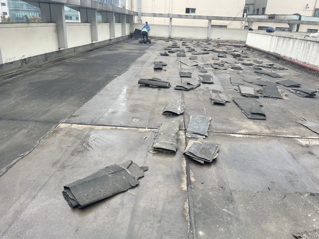 屋頂之前已經(jīng)在表面反復(fù)做了基層SBS改性瀝青防水卷材了,但是依然漏水,現(xiàn)在拆開之后水在防水卷材下面到處擴(kuò)散,導(dǎo)致防水卷材下面到處都是水
