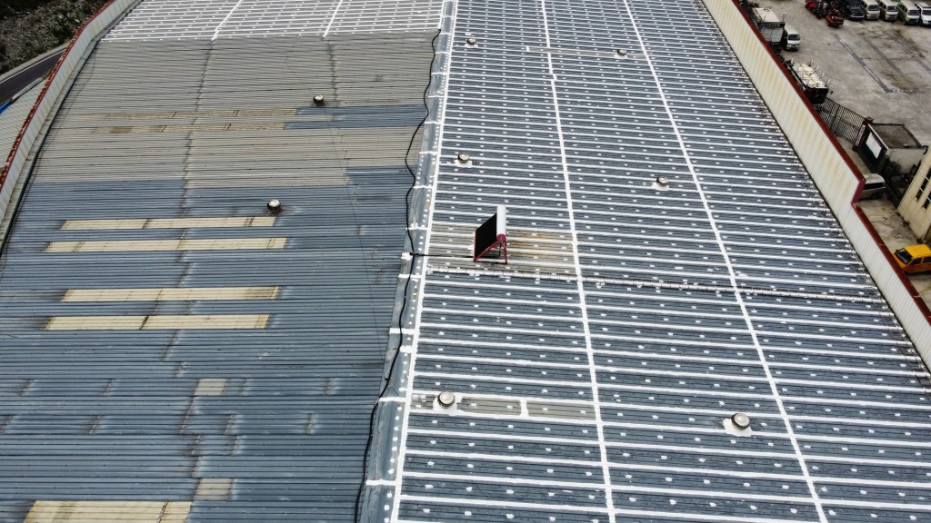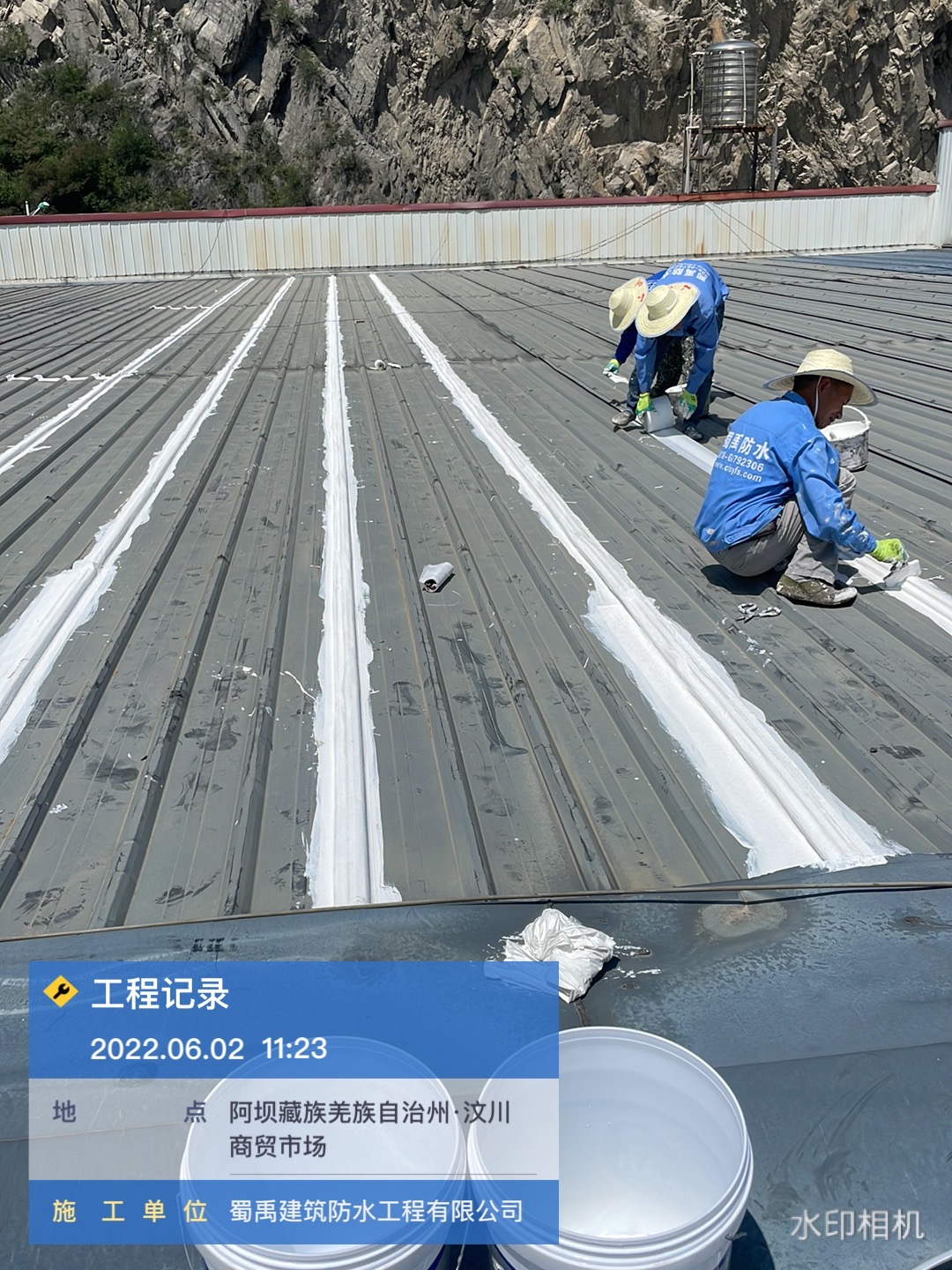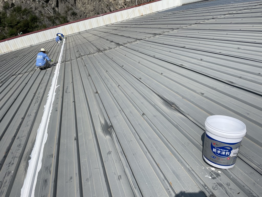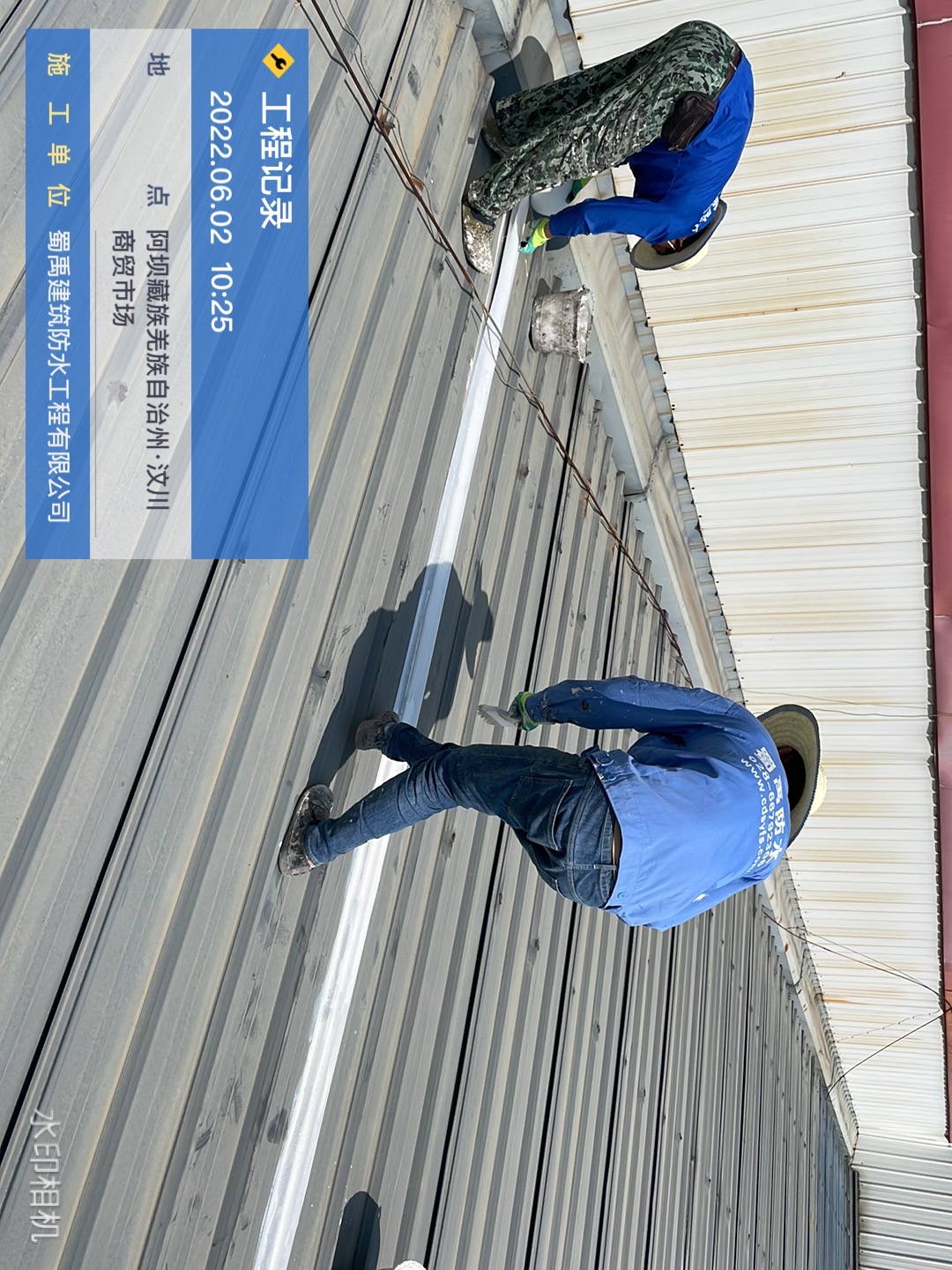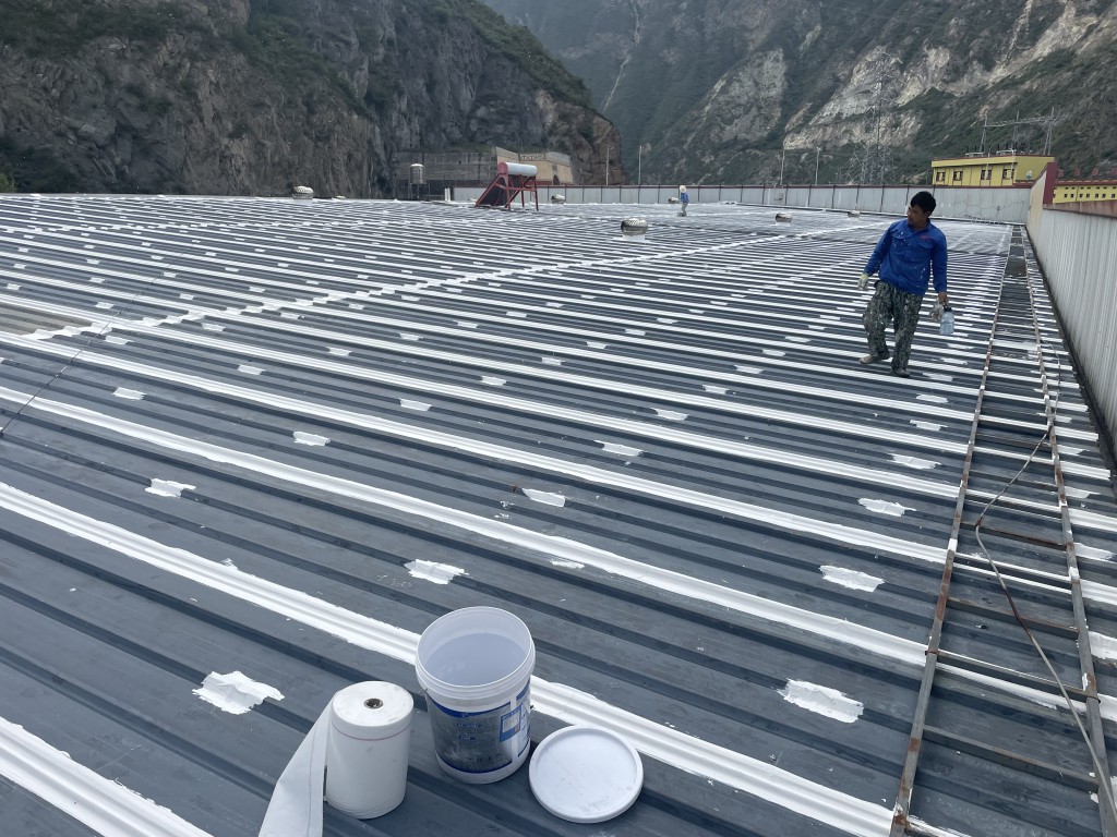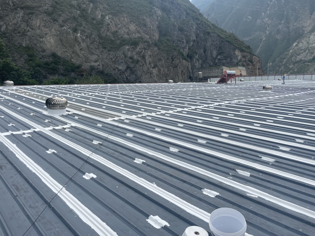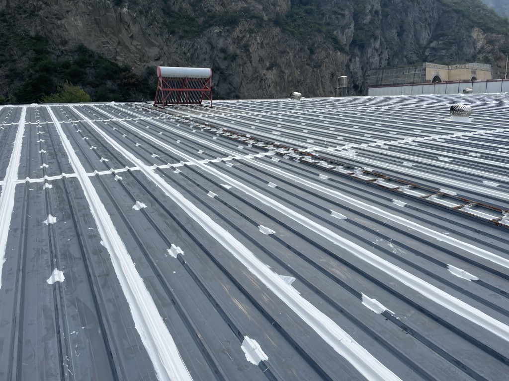我公司承接的位于四川省阿壩藏族羌族自治州汶川縣威州鎮(zhèn)沙窩子阿壩州普蘭特二手車交易市場有限公司廠房彩鋼頂防水補(bǔ)漏工程,這個工程是鋼結(jié)構(gòu)廠房,以前屋頂有多處漏雨的情況,由于漏水點位較多,業(yè)主方之前找公司在廠房屋頂又全部滿加蓋了一層彩鋼瓦,但是經(jīng)過了一段時間下雨的時候還是多處漏雨的情況,實在沒辦法了,找到了我們,我們根據(jù)現(xiàn)場實際查勘的情況,我們推薦采用SYR金屬屋面防水系統(tǒng)解決這個彩鋼頂漏雨難題,彩鋼搭接縫及螺絲釘部位先涂刷SYR金屬屋面專用防水涂料然后鋪貼專用縫織聚酯布,再涂刷SYR金屬屋面專用防水涂料,待干后表面再涂刷SYR金屬屋面專用防水涂料。業(yè)主方經(jīng)過考慮和考察之后決定采用我們的方案施工,事實證明我們施工之后下雨檢測效果很好,采用SYR金屬屋面防水系統(tǒng)施工的彩鋼頂下雨不漏雨了。
