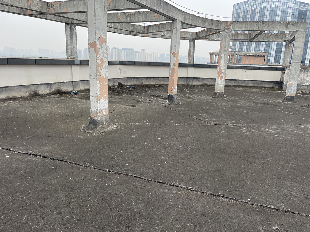 屋頂未施工之前,屋頂表面的保護層已經翻砂起殼,個別地方鋼筋都已經露出