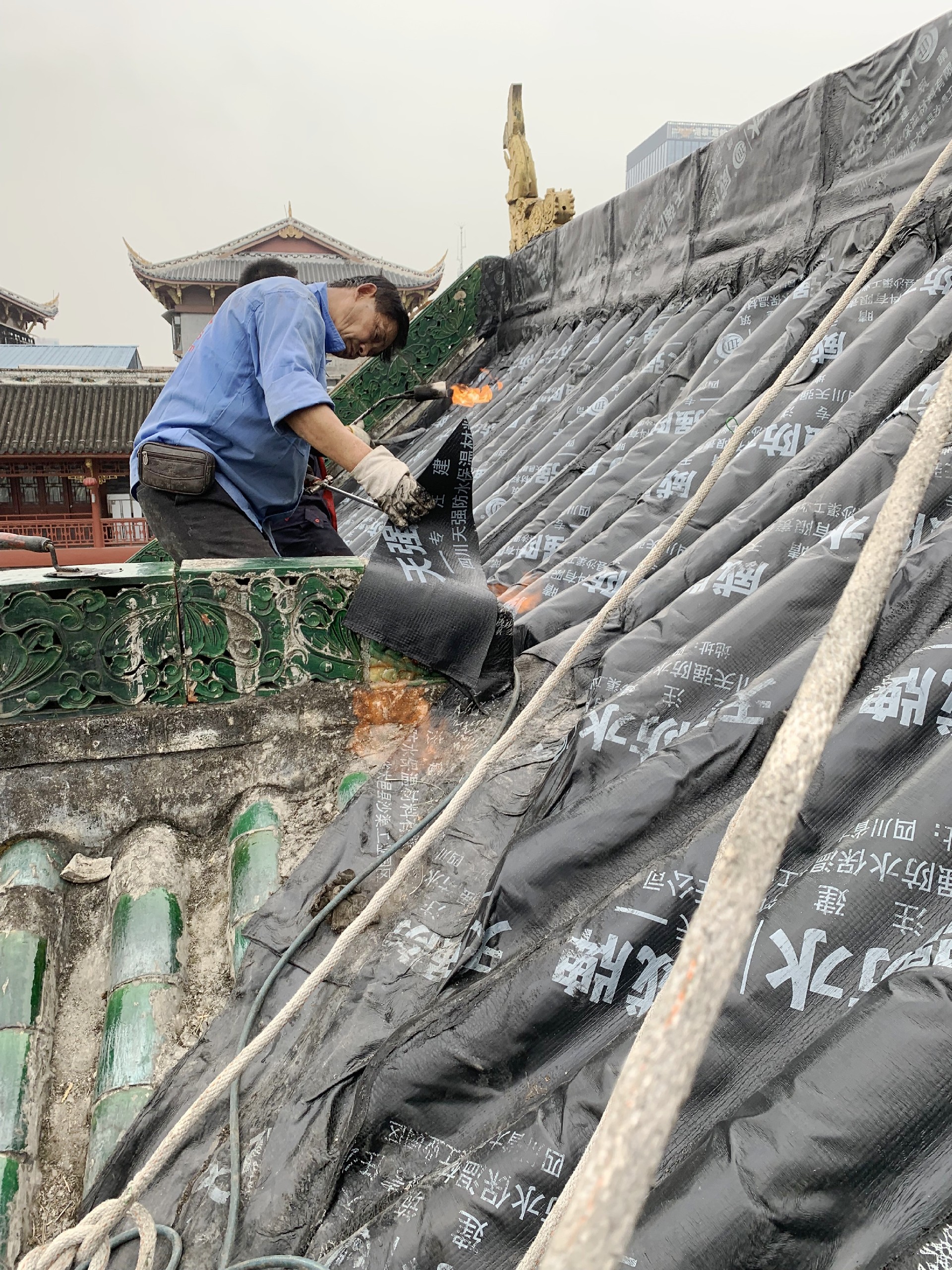 本工程位于成都市青羊區(qū)琴臺(tái)路252號(hào),是一處斜坡瓦屋面的防水施工項(xiàng)目。屋面采用了熱熔施工4mm厚SBS改性瀝青防水卷材的方式進(jìn)行防水施工。該工程由成都蜀禹建筑防水工程有限責(zé)任公司承接并施工完成。
