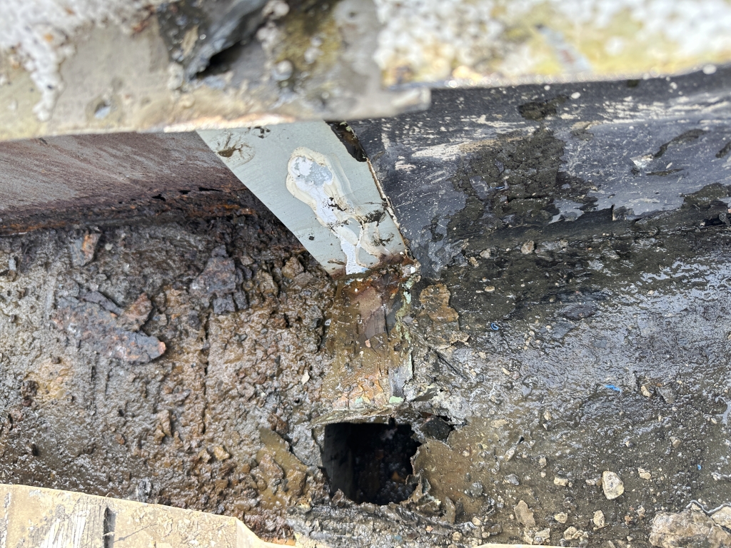 以上圖中可以看到,天溝都已經銹蝕穿孔,可以看到外面亮光了