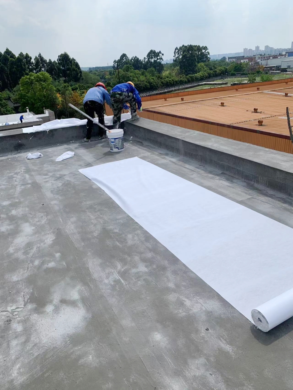 隨后,我們按照專業(yè)的施工流程,首先在基層表面涂刷聚合物防水涂料,并精心鋪貼專用縫織聚酯布。這一步驟不僅增強(qiáng)了防水層的附著力和耐久性,同時(shí)也為后續(xù)的涂層施工提供了良好的基底。接著,我們?cè)俅瓮克⒕酆衔锼喾浪苛希_保涂層均勻且牢固。