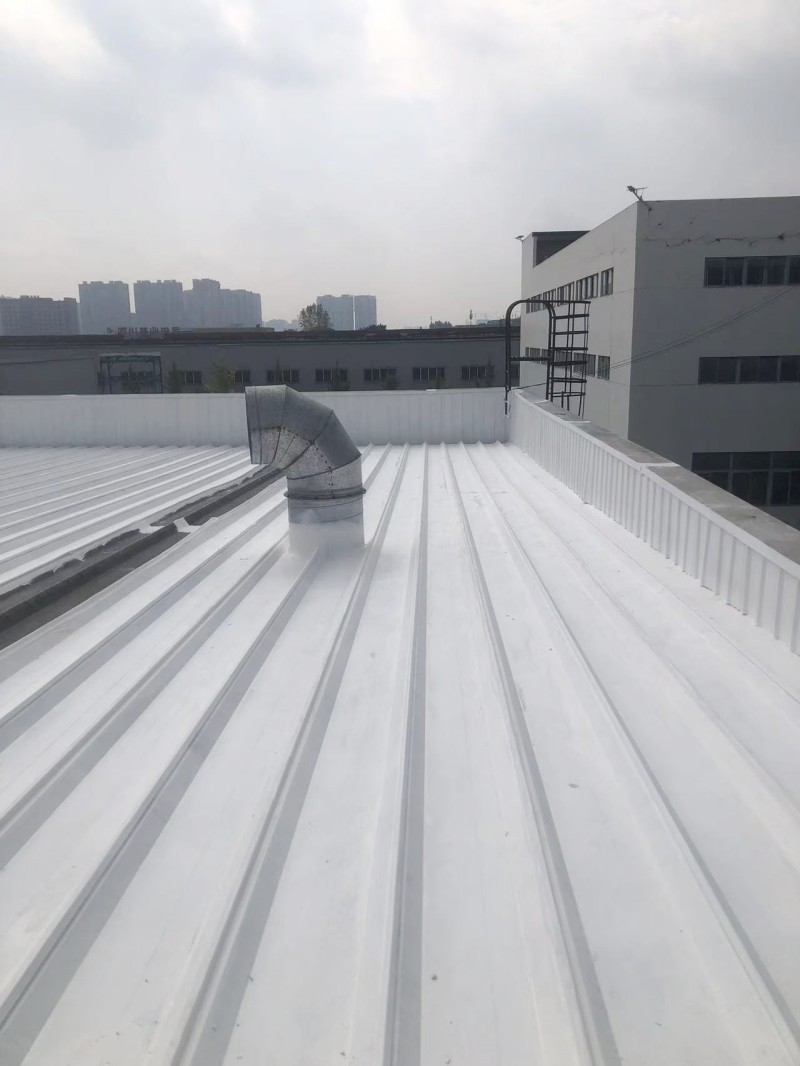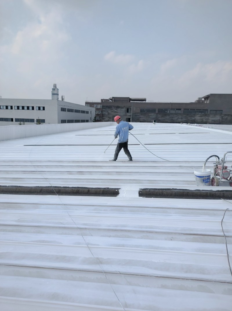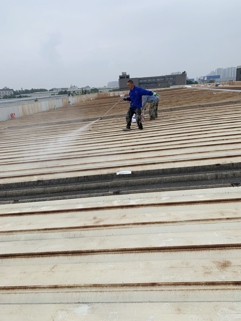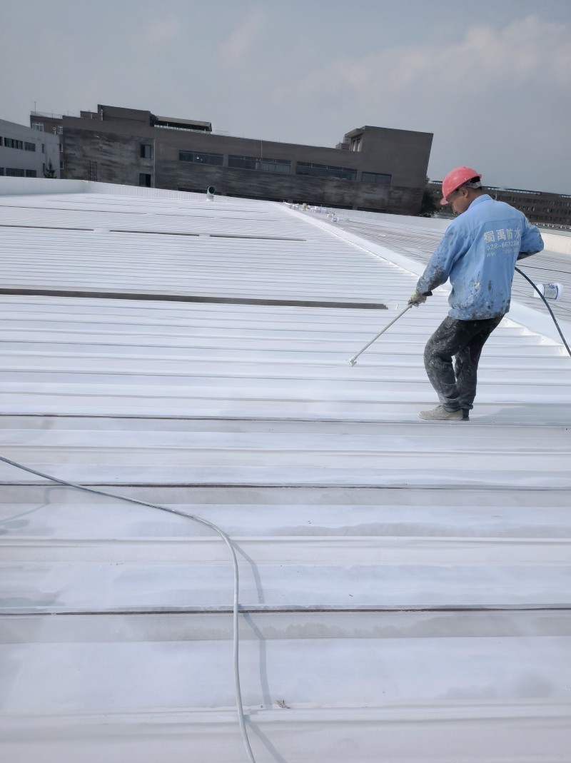 最后,在整個彩鋼頂表面,蜀禹防水公司滿噴涂了兩遍SYR金屬屋面涂料進行防腐翻新。這一步驟不僅能夠美化彩鋼頂的外觀,還能夠增強其抗腐蝕能力,延長其使用壽命。