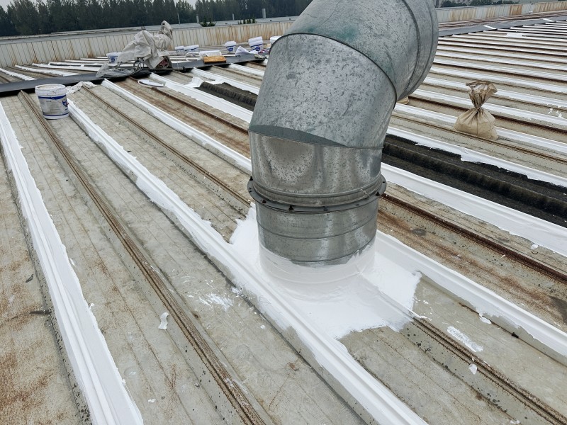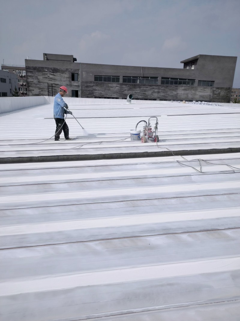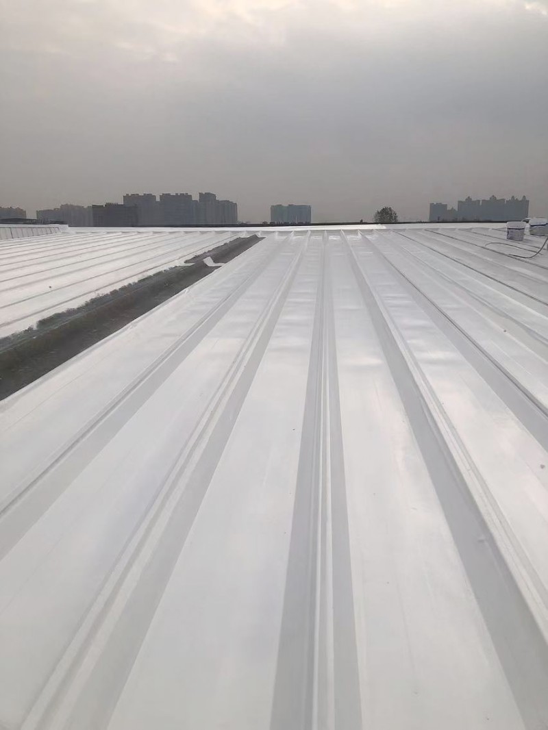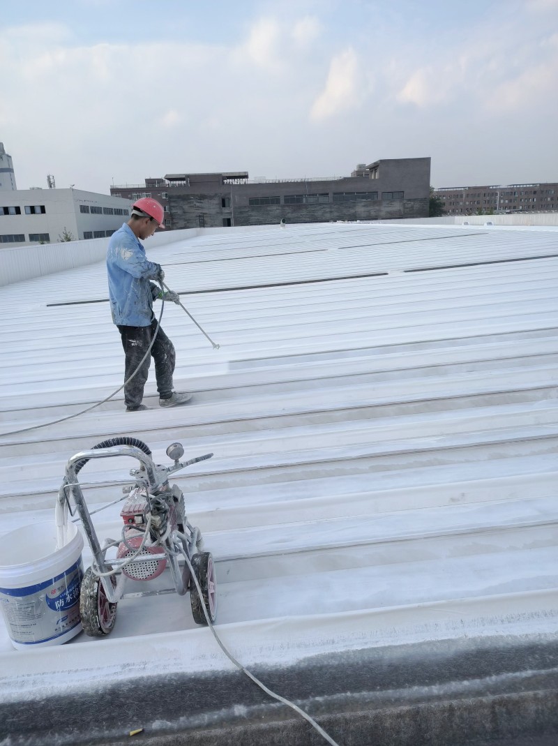 最后,在整個彩鋼頂表面,蜀禹防水公司滿噴涂了兩遍SYR金屬屋面涂料進行防腐翻新。這一步驟不僅能夠美化彩鋼頂的外觀,還能夠增強其抗腐蝕能力,延長其使用壽命。