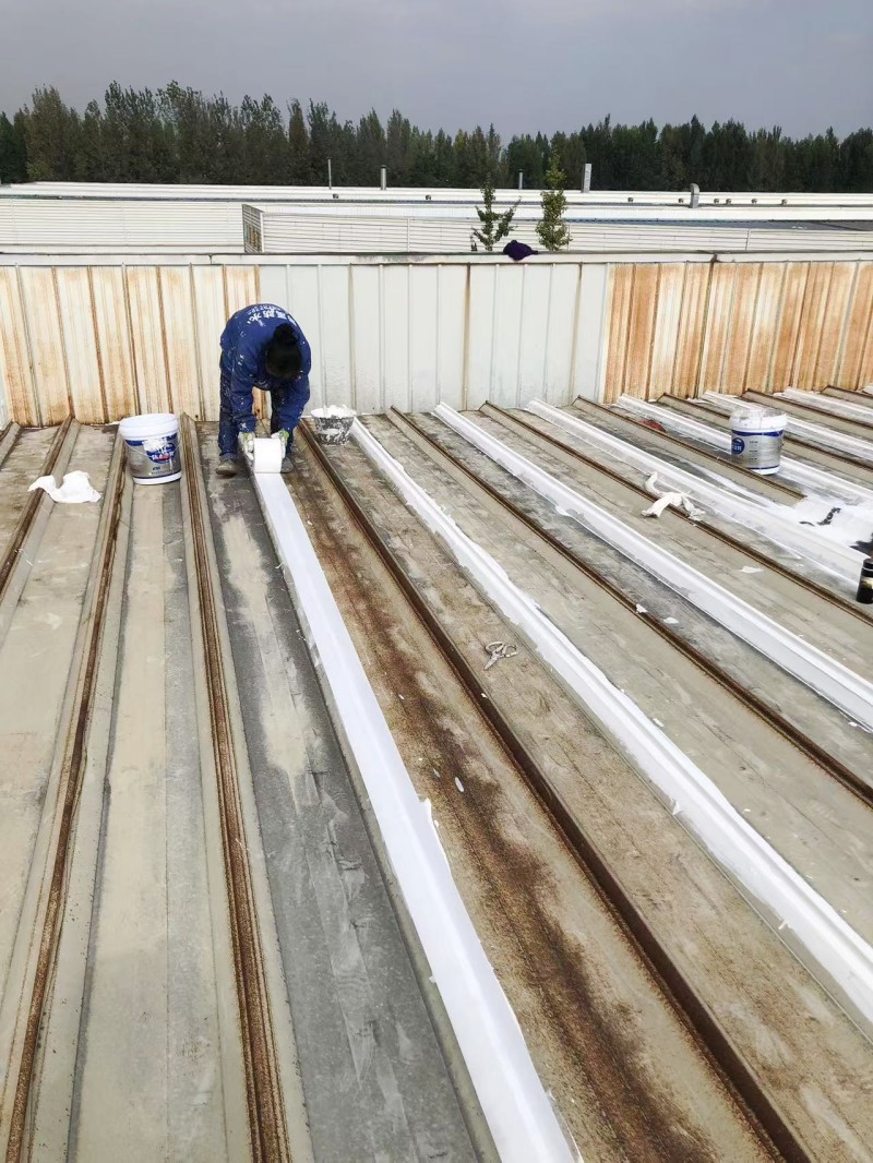 接下來,蜀禹防水公司采用了納米固銹進行基面固化處理。這一步驟能夠防止彩鋼瓦表面生銹,并進一步增強基面的附著力,使防水涂料更好地與基面結合,從而提高防水層的穩定性和耐久性。