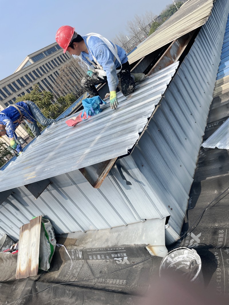蜀禹技術工人憑借多年鋼結構屋面施工經驗,嚴格按照“拆除—清理—測量—安裝—檢測”流程操作。施工全程佩戴安全裝備,高空作業規范有序,未對廠房正常運營造成干擾。