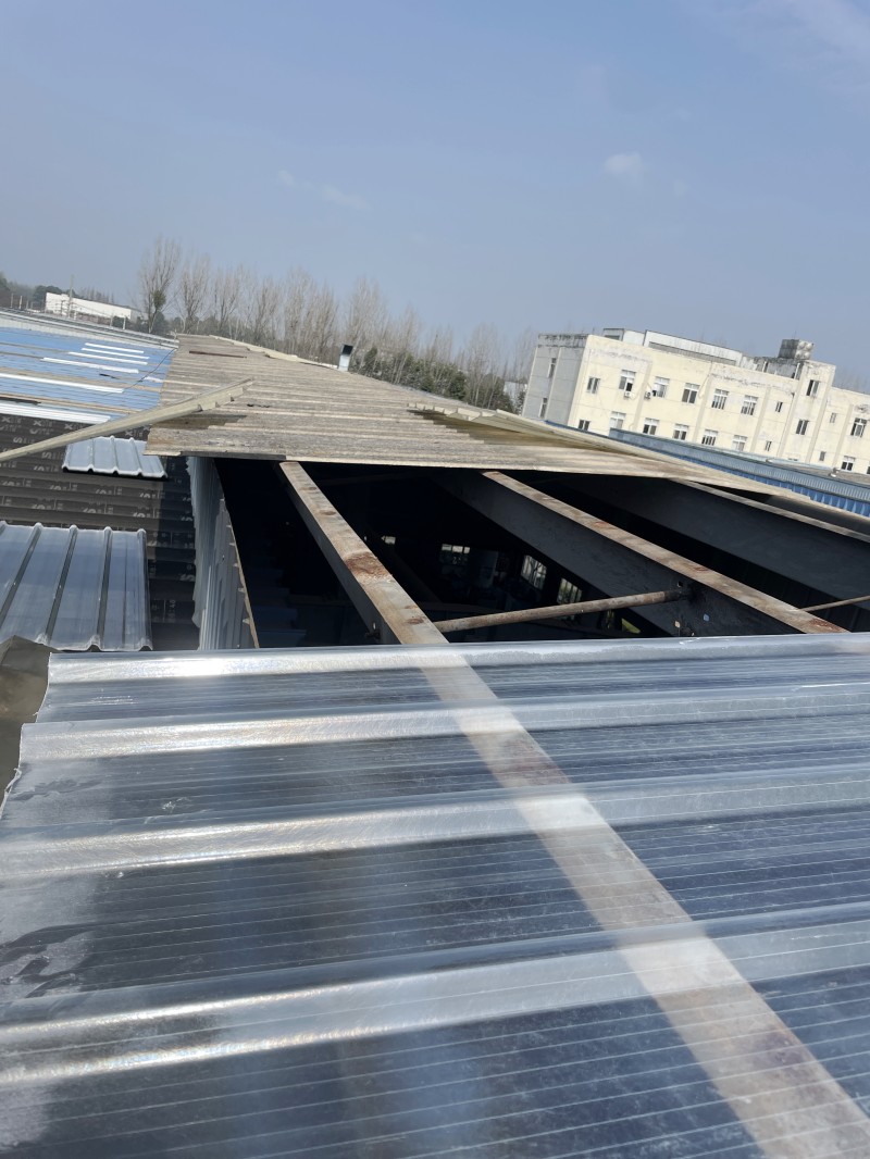 關鍵詞:FRP玻璃鋼采光瓦,廠房屋面,樓頂漏雨,彩鋼瓦更換,,蜀禹防水,廠房修繕,漏雨維修,防水不漏,防腐翻新,防水防腐,廠房屋頂維修